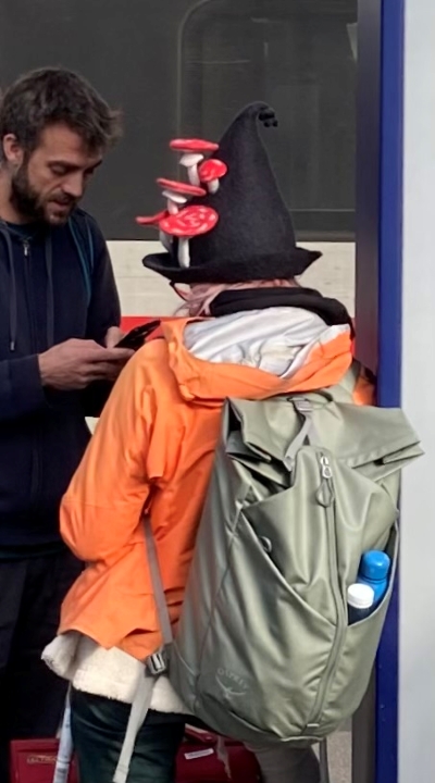 We gingen dus met de trein. Allang niet meer een garantie voor contact met de medemens, maar toch. Wat daarbij echter altijd helpt is een aaibaar accessoire. Het dingetje in kwestie heette Charlie.