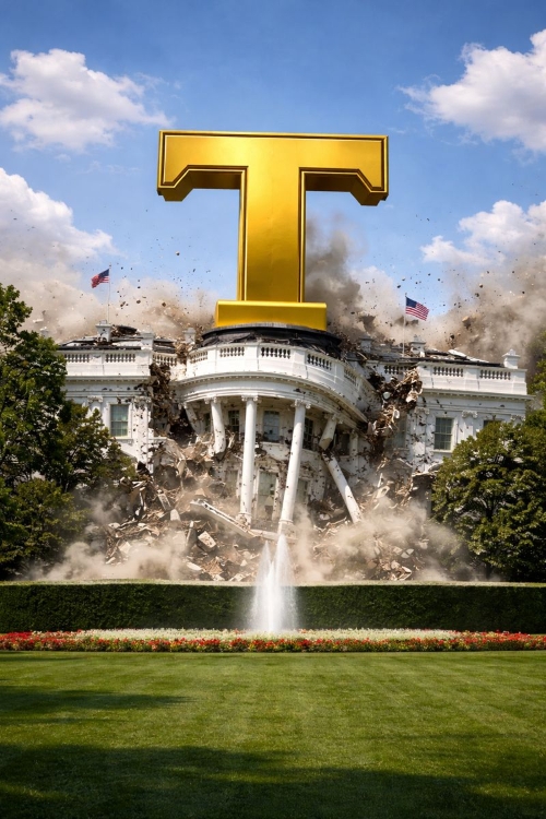 Oké, dit is een geval van AI & I, maar inmiddels zou ik niet meer in mijn arm knijpen als het waarheid werd. Intussen liet De Luifelkuif het Kennedy Center in Washington al ontsieren door op de gevel er nog bóven de naam van Kennedy