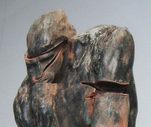 ‘De Denker’ van Rodin, aangepakt door een koperdief.